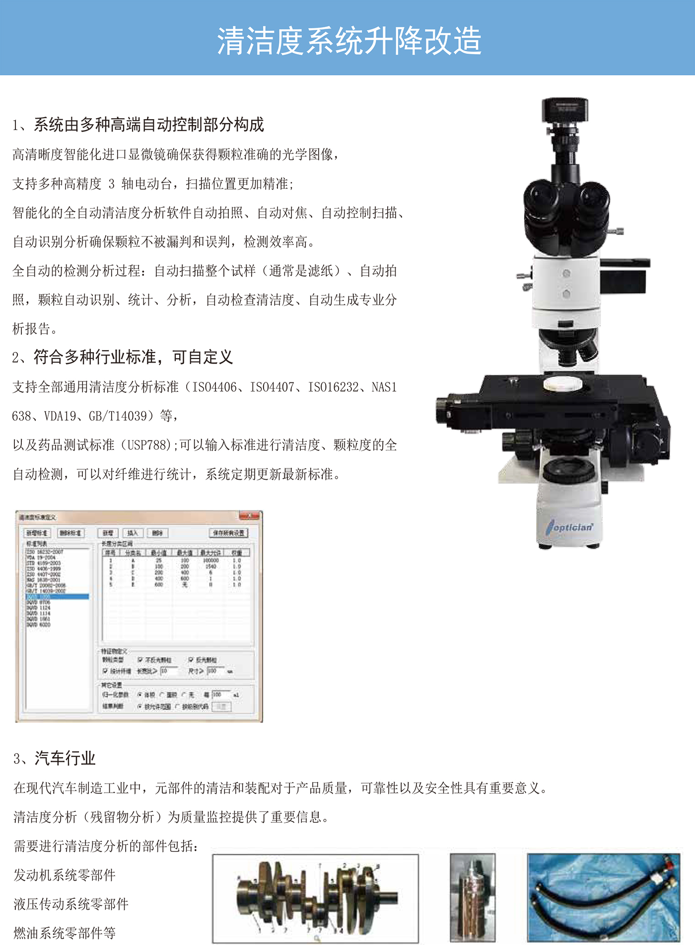 - - SZM 71体式清洁度检测系统 - 清洁度检测系统(高配型) - 清洁度检测系统(高倍型) - 清洁度检测系统(低倍型) - 清洁度颗粒萃取(全自动型) - 清洁度颗粒萃取(半自动型) - 清洁度颗粒萃取(双工位型) - 清洁度升级改造 - 清洁度实验室规划